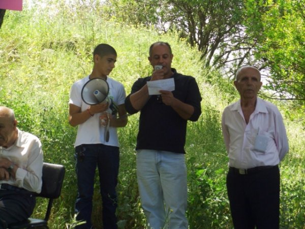 اما نحن اهالي سحماتا فقد عانينا ونعاني ما عاناه ويعانيه شعبنا من قهر وظلم. طلعوا علينا عام 2008 بمشروعين لالتهام المزيد من اراضينا، توسيع مستوطنة معلوت وتمدد مستوطنة تسورئيل على الحارة الشرقية لقريتنا، بحجة ان هذه الارض هي ملك للدولة طبقا للقوانين العنصرية التي سنوها وذلك لتجريد الفلسطيني من حقه في اراضيه ووطنه.. ونحن من هنا نعلن: