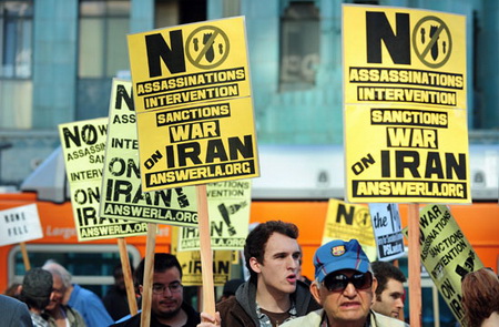 مظاهرة في لوس أنجلوس الأمريكية، أمس الأول، ضد الحرب على ايران: الأكاذيب نفسها، والمخطط نفسه..