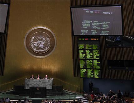 اعتباراً من منتصف الليل في بيروت والقدس، والغروب في نيويورك، أصبحت فلسطين دولة غير عضو في الأمم المتحدة بموافقة غالبية الدول في الجمعية العامة للمنظمة الدولية.