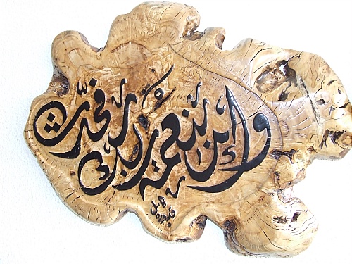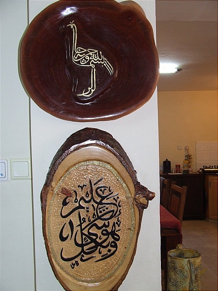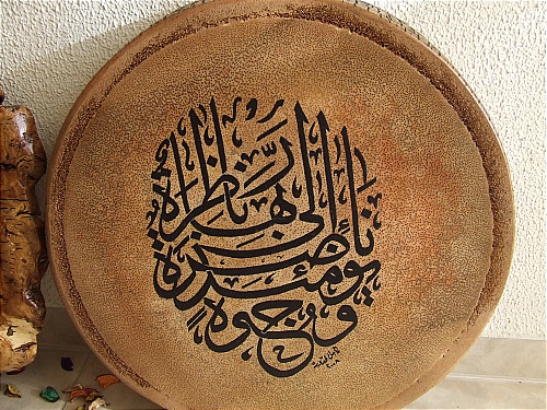 وأردف القدورة قائلاً: "بتشجيع قريب لي سأشارك في حزيران القادم في معرض للخط في الولايات المتحدة، وقمت بتحضير عدة لوحات خشبية وخشب الزيتون والارز والكينا والنخيل".