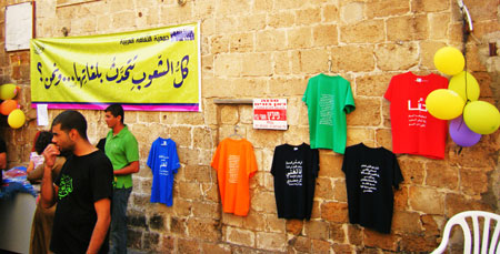 شعارات المهرجان تزيّن بوّابات عكا وأسوارها، أعلام المهرجان التي تحمل اسمه ترفرف على جوانب الطرق، عشرات المتطوّعين يتوزّعون على طريق الميناء؛ يبيعون الكتب ويوّزعون برنامج المهرجان ومجلّته، ويوّزعون البالونات التي تحمل اسم المهرجان على الأطفال بعد أن رسموا الفرحة على وجوههم، فعلاً ومجازًا، الحكواتي يقصّ حكاية عن الصالح والطالح، والتذاكر تباع لمسرحيّة "ظاهر العمر" وتعيده لمدينته بسورها الذي بناه لتكون قلعة المتوسّط، وتعيده لذاكرة أهل المكان. روّاد معرض الخطّ يفكّون الكلمات المترابطة عن بعضها ويحتارون بين "الكوفيّ" و"الرقعة"، والجموع تتدفّق في الطريق الذي يفضي إلى الميناء، والبهجة تلبس هذا العام حلّة مغايرة حوّلت لغة الأمّ إلى عروس العيد.
