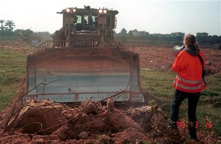 ويظهر الفيلم لقطات مصورة تعكس صلابة المتضامنين الاجانب الذين يقفون امام الجرافات الاسرائيلية ويمنعوها من التقدم تجاه المنازل الفلسطينية ويجبرونها على العودة ولكن احدى هذه الجرافات قضت على احلام راشيل التي كانت تتطلع فيها الى العودة الى وطنها والقيام باعمال تساعد الفلسطينيين لتحسين حياتهم بحسب رسائلها عندما دفنتها تحت الرمال فيما كانت تحاول منعها من التقدم.