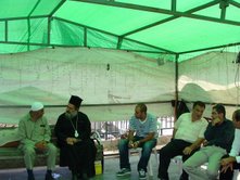 القدس – قام سيادة المطران عطاالله حنا رئيس أساقفة سبسطية للروم الأرثوذكس بزيارة تضامنية الى الأخوة المعتصمين في وادي الجوز قبالة البلدة القديمة والمسجد الأقصى المبارك وذلك أستنكارا لأستهداف المسجد الأٌقصى ومنع المصلين من الوصول اليه. وقد ألتقى سيادته مع الشيخ رائد صلاح رئيس الحركة الأسلامية في الداخل الفلسطيني وزملائه الذين تواجدوا في المكان والذين يعبرون من خلال أعتصامهم عن شجبهم وأستنكارهم لأستهداف المسجد المبارك.