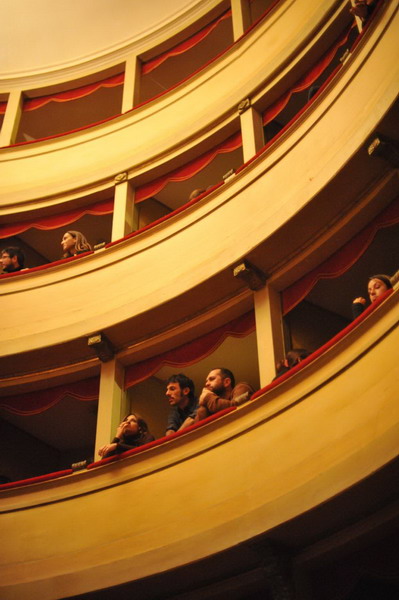 وكانت قاعة المسرح الكلاسيكسة والتي تتسع الى حوالي ثلاثمائة شخص قد أمتلأت بالحضور الذي توافد لشراء التذاكرحتى من خارج الجيرو منذ الساعة الرابعة من عصر يوم الافتتاح حيث أرسلت دعوات الخاصة لخمسين مدعوا فقط انحصرت على الداعمين ومقربي طاقم العمل .