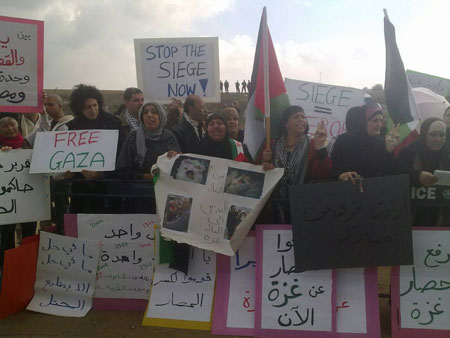 من جانبها صرحت النائبة حنين زعبي، في بيان عممته على وسائل الإعلام أن المظاهرة والاحتشاد على حاجز بيت حانون هي "بمناسبة مرور سنة على العدوان على غزة، سنة على استمرار العدوان على غزة، وأن الحرب هي ليست شكل العدوان الوحيد الذي شنته إسرائيل وغيرها على غزة، الحصار كان بداية العدوان، واستمرار الحصار هو استمرار الجريمة."