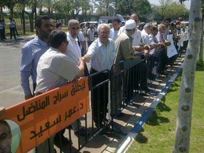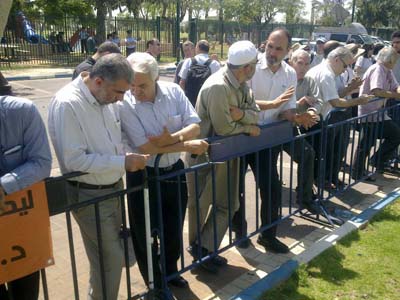 وقد تظاهر العشرات من الناشطين السياسيين والقيادات العربية في الداخل، صباح اليوم، الأربعاء، أمام المحكمة المركزية في "بيتاح تكفا" مطالبين بإطلاق سراح المعتقلين د. سعيد ومخول.
