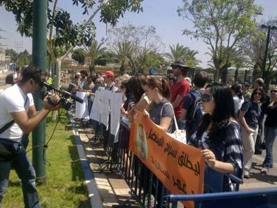 ووسط حضور مكثف لوسائل الإعلام العربية المحلية وغير المحلية، والعبرية أيضا، رفع المتظاهرون الشعارات وأطلقوا هتافات تطالب بإطلاق سراحهما.