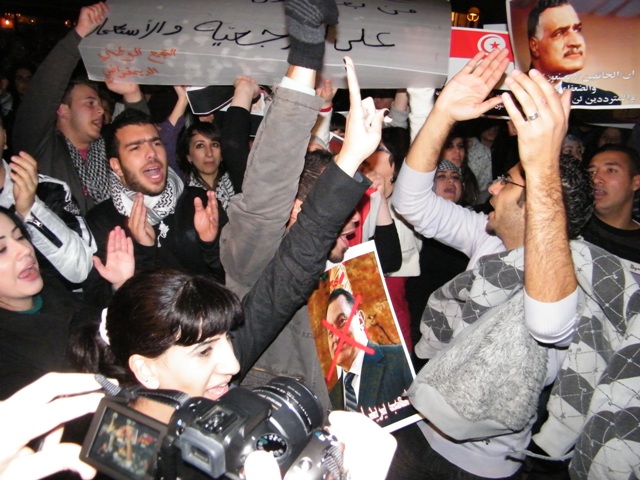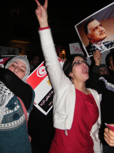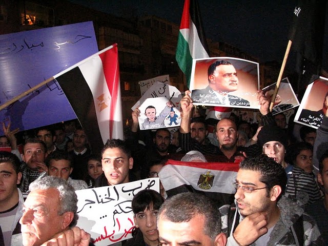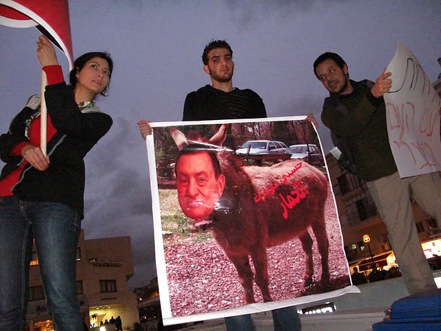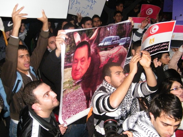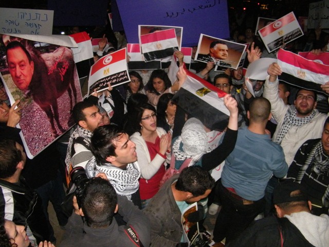 وقال ربيع عيد، أحد المنظمين للمظاهرة: "إنّ أمّتنا العربيّة تعيشُ مرحلةً من التّغيير الجوهريّ، تفتتح عصرا جديدا وحقبة جديدة، تنتقل فيهما من الظّلام إلى النّور، من الاستبداد والقيود والفساد إلى الحرّيّة، من الدّكتاتوريّة إلى الانعتاق، من الحزب الحاكم الواحد، والحاكم لمدى الحياة، إلى التعددية والانتقالية، وإنّه لمن واجبنا الأخلاقيّ والانسانيّ والوطنيّ القوميّ، وكشعبٍ يعاني من الاحتلال الاسرائيليّ وسياساته الغاشمة، أن ندعم إخوتنا العرب، لأنّ تحرّرهم يعني تحرّر فلسطين وسلامة الأمّة وتقدّمها ورفعتها وكرامتها.. ولهذا نحن هنا، نشدّ على أيادي أبناء الشعب المصري ليصمد، ويثابر حتى يحقق مطالبه، وإن التضحيات التي يقدمها ستقوده إلى العدالة والحرّيّات، والحقوق، والدّيموقراطيّة، وكرامة الشّعوب.. وندعو الشعب التونسي للمحافظة على ثورته المجيدة."