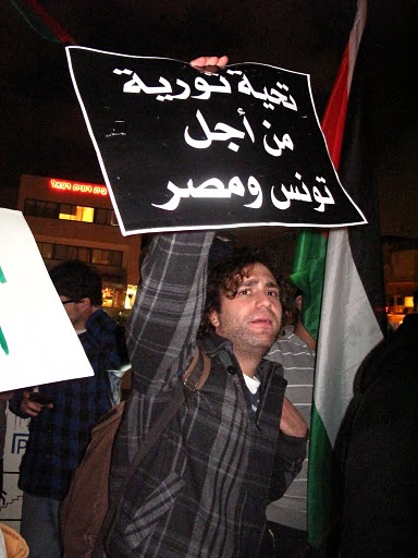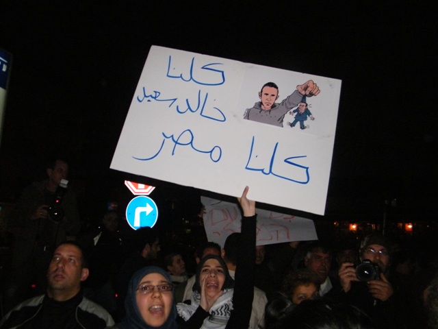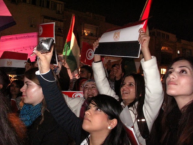 قام المئات من أبناء الداخل الفلسطيني مساء الثلاثاء، بالاحتشاد بالقرب من السفارة المصرية بتل أبيب، وذلك في مظاهرة دعم ومؤازرة لثورتيّ مصر والجزائر المجيدتين، داعين أحرار العالم والشعب الفلسطيني والأمة العربيّة، للوقوف مع الشعب المصريّ حتى رحيل حسني مبارك وإسقاط نظامه ونيل الشعب المصريّ حريته، ومباركين للشعب التونسي "إنجازه التاريخي".