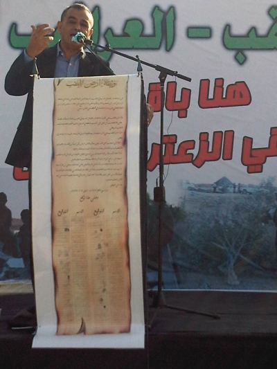 وجرى تنظيم مهرجان خطابي، افتتحه الشيخ صياح الطوري، رئيس اللجنة الشعبية للدفاع عن العراقيب، فرحب بالحضور، مشيرا إلى أن السلطات الإسرائيلية قامت بهدم العراقيب 21 مرة، وأن أهلها باقون على العهد حتى لو هدمت ألف مرة.