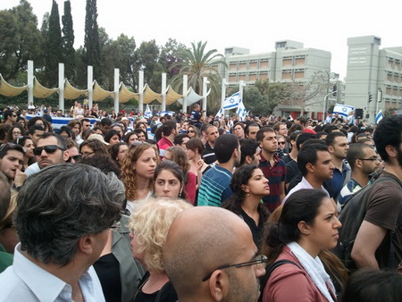 حيفا – مكتب الاتحاد - شارك امس المئات من الطلاب الجامعيين العرب واليهود وعشرات المحاضرين من جامعة تل أبيب في مراسيم إحياء الذكرى الـ 64 للنكبة التي بادر إليها فرع الجبهة الطلابية في الجامعة ومنظمة زوخروت وحركة ترابط وبحضور النائب محمد بركة رئيس الجبهة الديمقراطية والنائب حنا سويد رئيس كتلة الجبهة في الكنيست والفنان القدير محمد بكري.