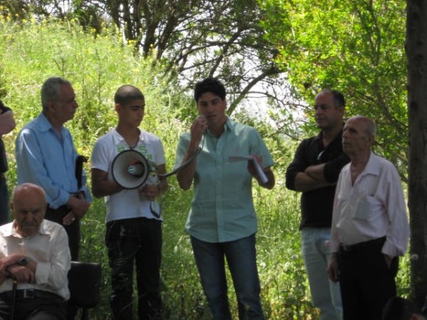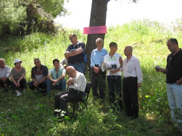اما نحن اهالي سحماتا فقد عانينا ونعاني ما عاناه ويعانيه شعبنا من قهر وظلم. طلعوا علينا عام 2008 بمشروعين لالتهام المزيد من اراضينا، توسيع مستوطنة معلوت وتمدد مستوطنة تسورئيل على الحارة الشرقية لقريتنا، بحجة ان هذه الارض هي ملك للدولة طبقا للقوانين العنصرية التي سنوها وذلك لتجريد الفلسطيني من حقه في اراضيه ووطنه.. ونحن من هنا نعلن: