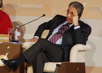ليسمح لنا السيد عمرو موسي امين عام الجامعة العربية ان نختلف معه، في قوله للرئيس الاسرائيلي شمعون بيريز، اثناء انتفاضته الغاضبة، بأن العرب ليسوا مغفلين اثناء مشاركة الاثنين في مؤتمر الحائزين علي جائزة نوبل المنعقد حاليا في مدينة البتراء، ونقول له انهم فعلا مغفلون بل و اغبياء و جبناء استمرأوا التذلل للإسرائيليين وتلقي الصفعات منهم الواحدة تلو الاخري.
