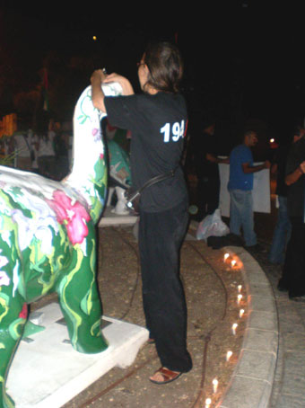 ورفع المتظاهرون الاعلام الفلسطينية واللافتات المخلدة لارواح الشهداء والمنددة بالمجازر وجرائم الحرب الاسرائيلية المستمرّة، وصور من المجزرة...كما تمت إضاءة عشرات الشموع تكريمًا واجلالاً لارواح شهدائنا الابرار.