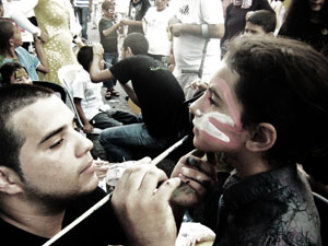 شعارات المهرجان تزيّن بوّابات عكا وأسوارها، أعلام المهرجان التي تحمل اسمه ترفرف على جوانب الطرق، عشرات المتطوّعين يتوزّعون على طريق الميناء؛ يبيعون الكتب ويوّزعون برنامج المهرجان ومجلّته، ويوّزعون البالونات التي تحمل اسم المهرجان على الأطفال بعد أن رسموا الفرحة على وجوههم، فعلاً ومجازًا، الحكواتي يقصّ حكاية عن الصالح والطالح، والتذاكر تباع لمسرحيّة "ظاهر العمر" وتعيده لمدينته بسورها الذي بناه لتكون قلعة المتوسّط، وتعيده لذاكرة أهل المكان. روّاد معرض الخطّ يفكّون الكلمات المترابطة عن بعضها ويحتارون بين "الكوفيّ" و"الرقعة"، والجموع تتدفّق في الطريق الذي يفضي إلى الميناء، والبهجة تلبس هذا العام حلّة مغايرة حوّلت لغة الأمّ إلى عروس العيد.