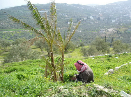وما دمنا في هذا المقام حري بنا أن نشير إلى قصيدته المطولة "في مغارة المعزى" (شبق وعبق ص56-65)، فهي خير مثال لذلك العشق الفلاحي الصاخب في هدوئه وصدقه وبراءته، هذا العشق لا يشبه البتة عشق شعراء الجاهلية ولا شعراء الغزل العذري أو العمري، ولا هو غزل شعراء عصر النهضة. إنه عشق الفلاح الفلسطيني الذي ينسج أحلامه وأحاسيسه من رائحة الأرض، ومن عبق سهولها ووديانها ونبتها ومن تغريد طيورها التي تشاركه فرحة اللقاء، تماما كما يميل "فيجن الوادي"، و"نرجس الوادي".