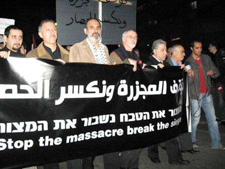 أما الرفيق محمد كناعنة، امين عام حركة ابناء البلد، فقد حيى أهل حيفا على وقفتهم الصامدة مع أهلهم في غزة المذبوحين تحت طائرات نيرون القرن أل-21 أيهود باراك، وقال ان ما يجري هناك هو جريمة إبادة شعب.