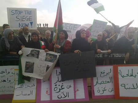 من جانبها صرحت النائبة حنين زعبي، في بيان عممته على وسائل الإعلام أن المظاهرة والاحتشاد على حاجز بيت حانون هي "بمناسبة مرور سنة على العدوان على غزة، سنة على استمرار العدوان على غزة، وأن الحرب هي ليست شكل العدوان الوحيد الذي شنته إسرائيل وغيرها على غزة، الحصار كان بداية العدوان، واستمرار الحصار هو استمرار الجريمة."