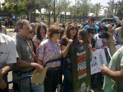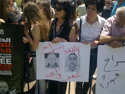 ووسط حضور مكثف لوسائل الإعلام العربية المحلية وغير المحلية، والعبرية أيضا، رفع المتظاهرون الشعارات وأطلقوا هتافات تطالب بإطلاق سراحهما.