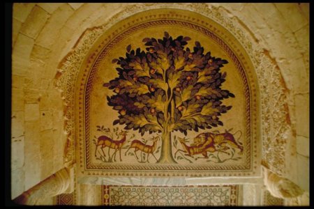 ويذيع صيت الموقع نظرًا لكثرة الفسيفساء التي يضمها، ففيه "شجرة الحياة" الشّهيرة، وتحتها غزالان يرعيان العشب، في حين يفترس أسد غزالا ثالثا، وذلك يفسّر على أنّه رمز للسّلم والحرب.