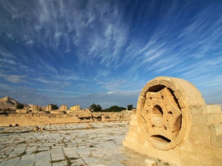 وفي ردهة الحمّام الكبير، وعلى مساحة 850 مترا مربعا، نجد فسيفساء أرضيّة، وهي أفضل تلك المجموعات الفسيفسائيّة التي تمت المحافظة عليها في الشرق الأوسط، كما أنها ولا شك الأكبر في العالم بحسب الخبراء، واليوم تغطّي رسوماتها الهندسية طبقة من الرّمال بهدف حمايتها.
