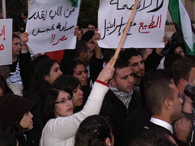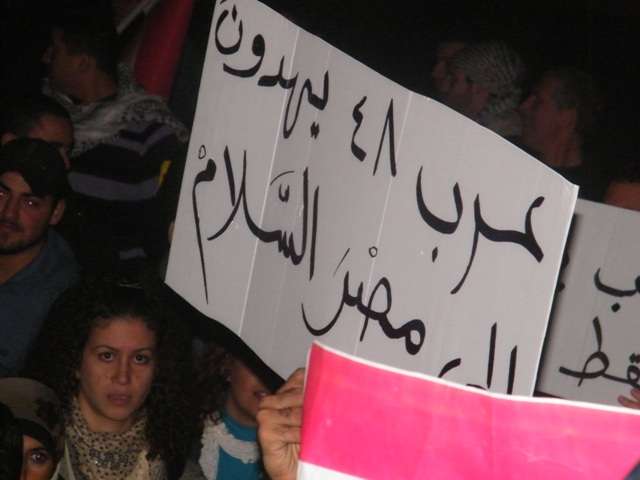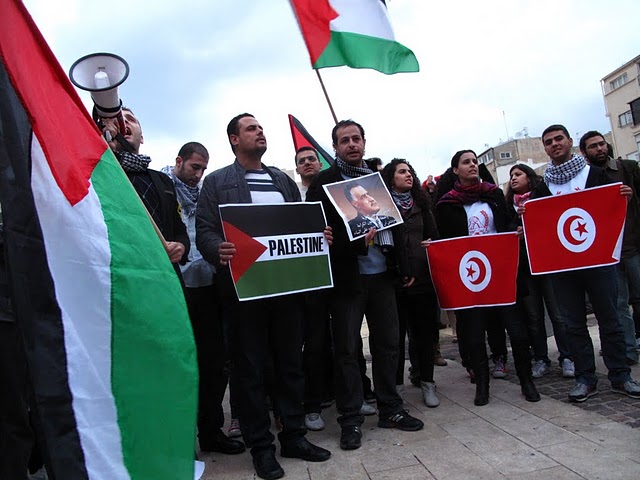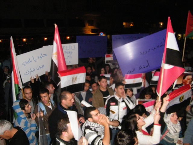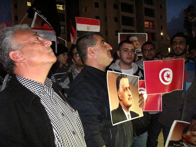 قام المئات من أبناء الداخل الفلسطيني مساء الثلاثاء، بالاحتشاد بالقرب من السفارة المصرية بتل أبيب، وذلك في مظاهرة دعم ومؤازرة لثورتيّ مصر والجزائر المجيدتين، داعين أحرار العالم والشعب الفلسطيني والأمة العربيّة، للوقوف مع الشعب المصريّ حتى رحيل حسني مبارك وإسقاط نظامه ونيل الشعب المصريّ حريته، ومباركين للشعب التونسي "إنجازه التاريخي".