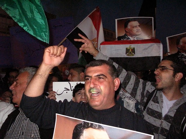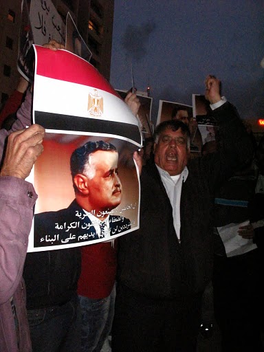صورة عبد النّاصر ترفع عاليًا، وصورة مبارك تحرق وتمزق وتداس