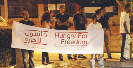 وأكد المعتصمون وقوفهم خلف الأسرى في معركتهم للحصول على ظروف أسر أفضل، وأكدوا التفاف الشعب خلف أسراهم في معركة "الأمعاء الخاوية" التي يعيشونها.