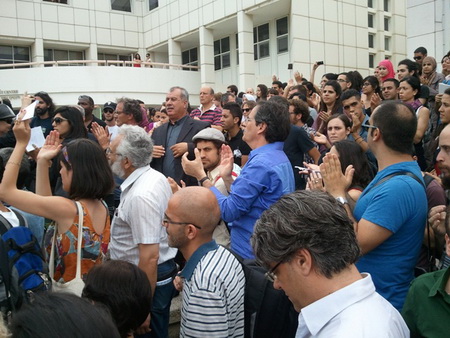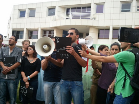 حيفا – مكتب الاتحاد - شارك امس المئات من الطلاب الجامعيين العرب واليهود وعشرات المحاضرين من جامعة تل أبيب في مراسيم إحياء الذكرى الـ 64 للنكبة التي بادر إليها فرع الجبهة الطلابية في الجامعة ومنظمة زوخروت وحركة ترابط وبحضور النائب محمد بركة رئيس الجبهة الديمقراطية والنائب حنا سويد رئيس كتلة الجبهة في الكنيست والفنان القدير محمد بكري.