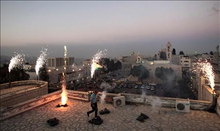 من احتفالات بيت لحم بعد إدراج كنيسة المهد على لائحة التراث العالمي أمس